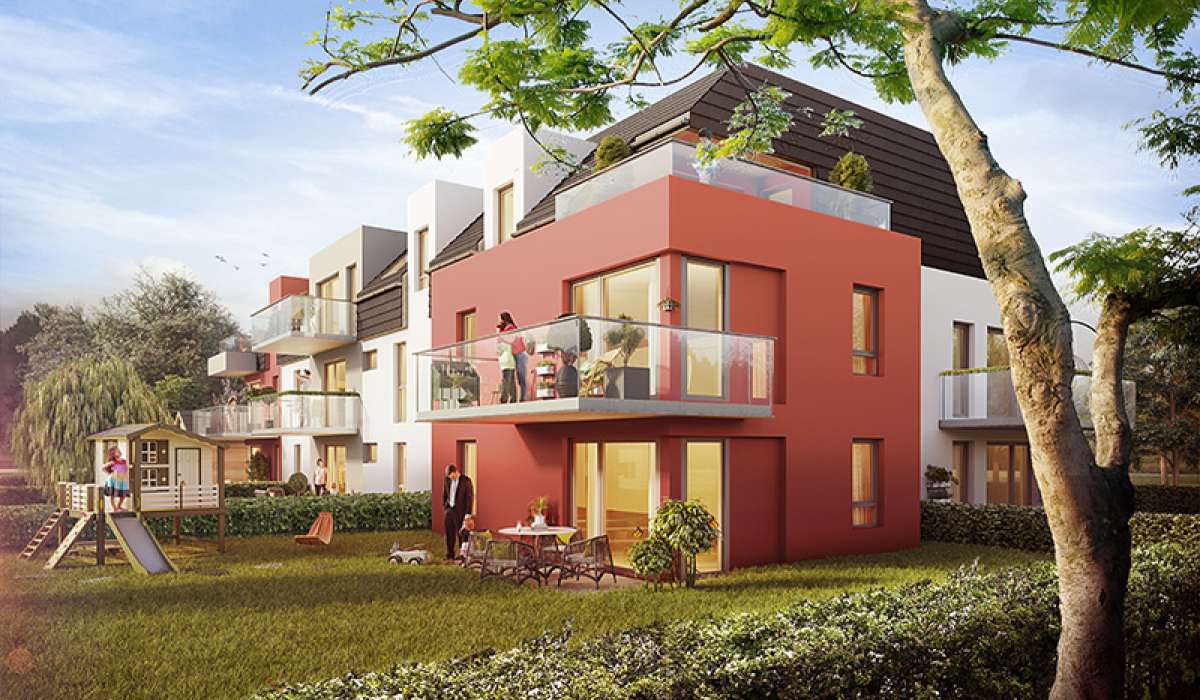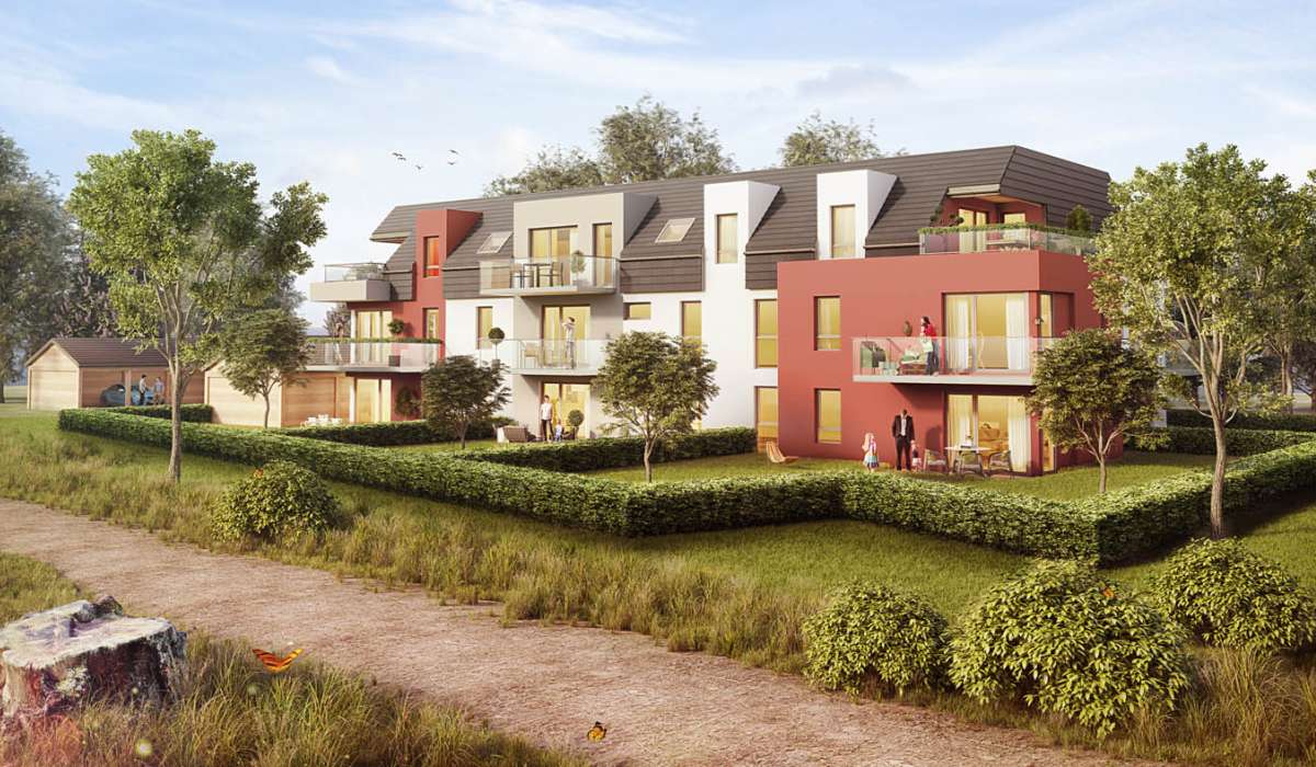 Située sur une nouvelle aire résidentielle, rue du Docteur Schweitzer à Kurtzenhouse, la résidence « L'Eponyme » se distingue par son architecture intemporelle et son environnement très nature.