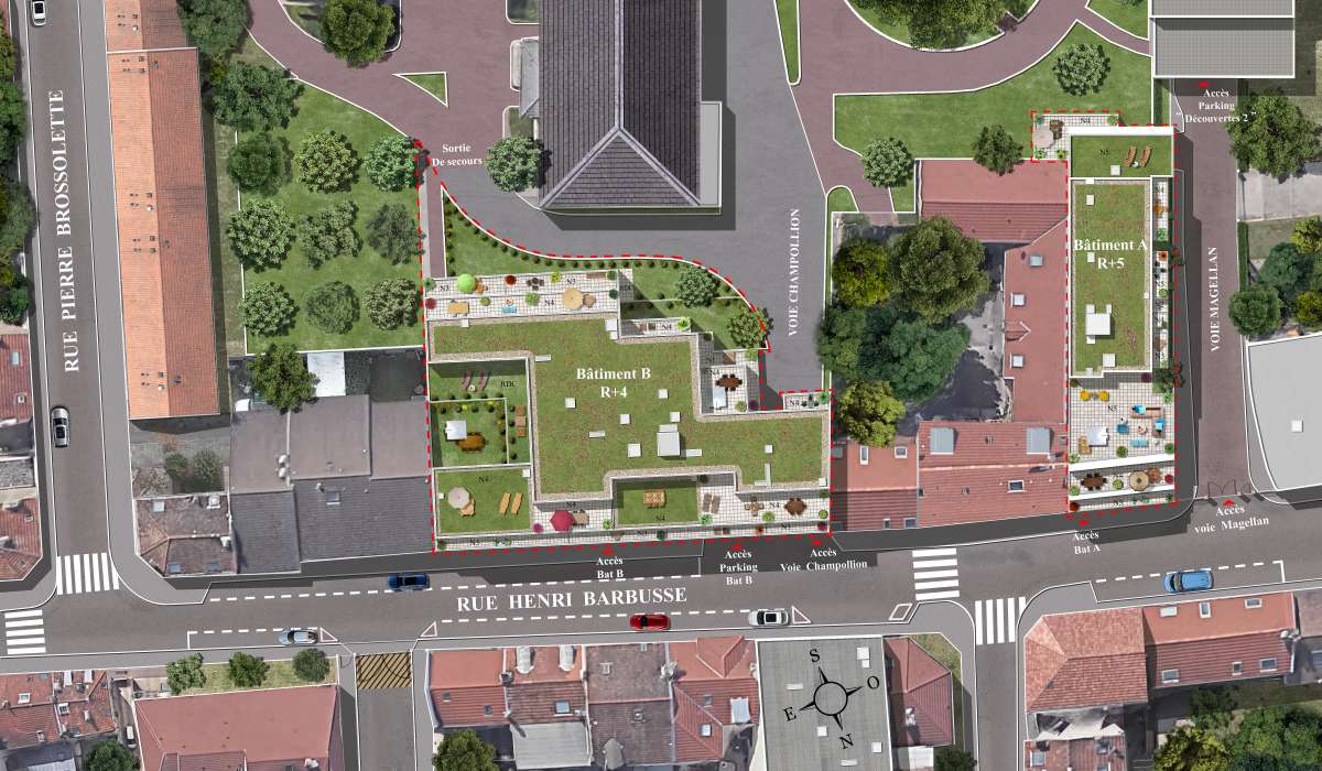 Ce projet d’immobilier neuf accueille la plupart de ses places de parking en sous-sol.